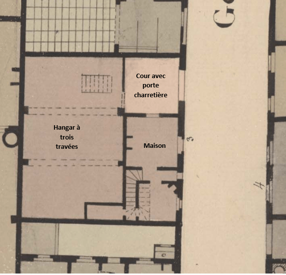 Et si au n° 5 de la rue Gérard-Beauquet, on trouve au moins mention dans les almanachs et les annuaires, en 1827, d’un scieur d’acajou, nommé Marié [5], nous ignorons qui occupait le n° 3 avant l’arrivée de Jean Boudet à la fin des années 1830. Faisons l’hypothèse qu’avec son vaste hangar, l’endroit a pu servir au début de XIXe siècle de lieu de stockage pour l’un des marchands de bois de la rue, ou dans les années 1809 et 1810 de dépôt pour Fouchard, un marchand de charbon installé au n° 2[6].
