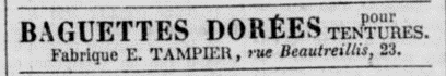A la mort de François Frémy, le 7 janvier 1865, la propriété du 23 rue Beautreillis revint à sa seconde fille, Bathilde-Caroline. Celle-ci avait épousé en septembre 1854 Pierre-Léopold Brot[5]. Né en 1828, il était le fils d’un entrepreneur en miroiterie, François-Philibert Brot (1796-1878) dont le parcours présentait bien des similitudes avec celui de François Frémy. D’abord employé à la Manufacture des glaces, sise rue de Reuilly, il ouvrit en 1826[6] sa propre miroiterie d’abord 3 rue Grande-Reuilly[7], puis dès le début des années 1830 rue du Caire, avant de l’installer 89 rue du faubourg Saint-Denis en 1861[8]. En 1854, au moment du mariage de son fils Pierre-Léopold, sans doute pour consolider sa position, François-Philibert Brot l’associa à son affaire en créant avec lui une société en nom collectif, Brot père et fils[9]. Et à l’instar de la maison Frémy, la miroiterie Brot connut à partir du milieu du siècle un développement considérable et une grande renommée dans sa spécialité[10].