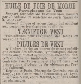 [31] Nombreuses publicités dans l’ensemble de la presse en 1890 et 1891.