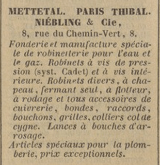 vis taraudées et de boulons en laiton et acier, qu’il se partagea avec d’autres manufacturiers en 1893[14]. Les locaux de la rue du Chemin-Vert devinrent sans doute trop exigus pour y permettre l’installation de machines supplémentaires et l’embauche de nouveaux ouvriers. Mettetal jeta alors son dévolu sur la vieille maison de la rue Beautreillis, et surtout sur son jardin sur lequel il pourrait édifier une vaste usine. Sur la partie de la parcelle occupée par l’hôtel, l’industriel projetait « de démolir de fond en comble les bâtiments pour faire construire à la place une nouvelle maison de rapport »[15].